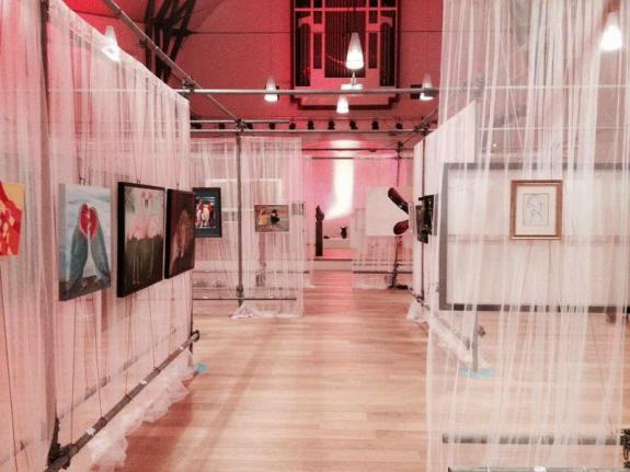 The 3 installations are designed to exhibit the work of local artists of a small community in the west of the Netherlands.In tree different ways we explore the boundaries of locally and readily available materials. This leads to 3 different ways to apply specific techniques to display paintings and 3d works as well as 3 totally different ways to experience the space of the church.The design and construction of the installations was made possible by collaboration of enthusiastic volunteers.