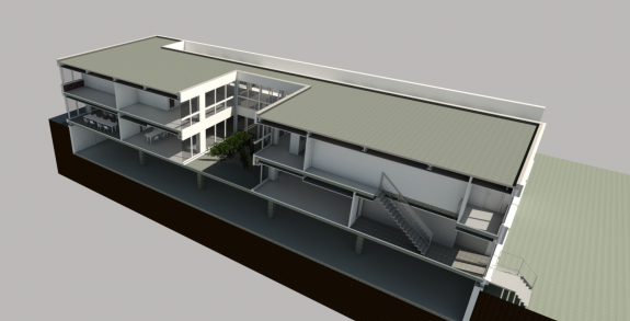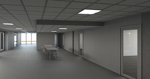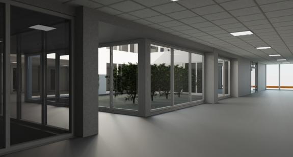 On an industrial site this building is transformed to have a multi-functional usage. The closed cubical structure was given a new feeling of openness by introducing a central patio. Daylight was brought in assuring a multifunctional usage of the building. The technical state of the building and its installations are adjusted to current requirements.