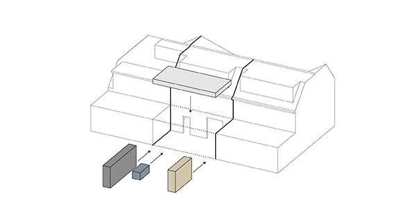 In this design we try to find a sense of place by combining 4 independent elements instead of a mere extrusion of the living room.